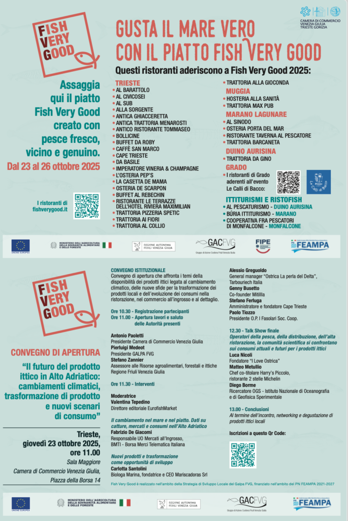 Sono lieta di condividere che sarò tra i relatori del Festival della pesca e dell’acquacoltura in Friuli Venezia Giulia, noto come FISH VERY GOOD 2025. Questo evento, che si svolgerà dal 16 al 19 ottobre 2025 , si preannuncia come un importante momento di riflessione e valorizzazione per il settore e noi racconteremo la storia di Mitilla® la cozza di Pellestrina.